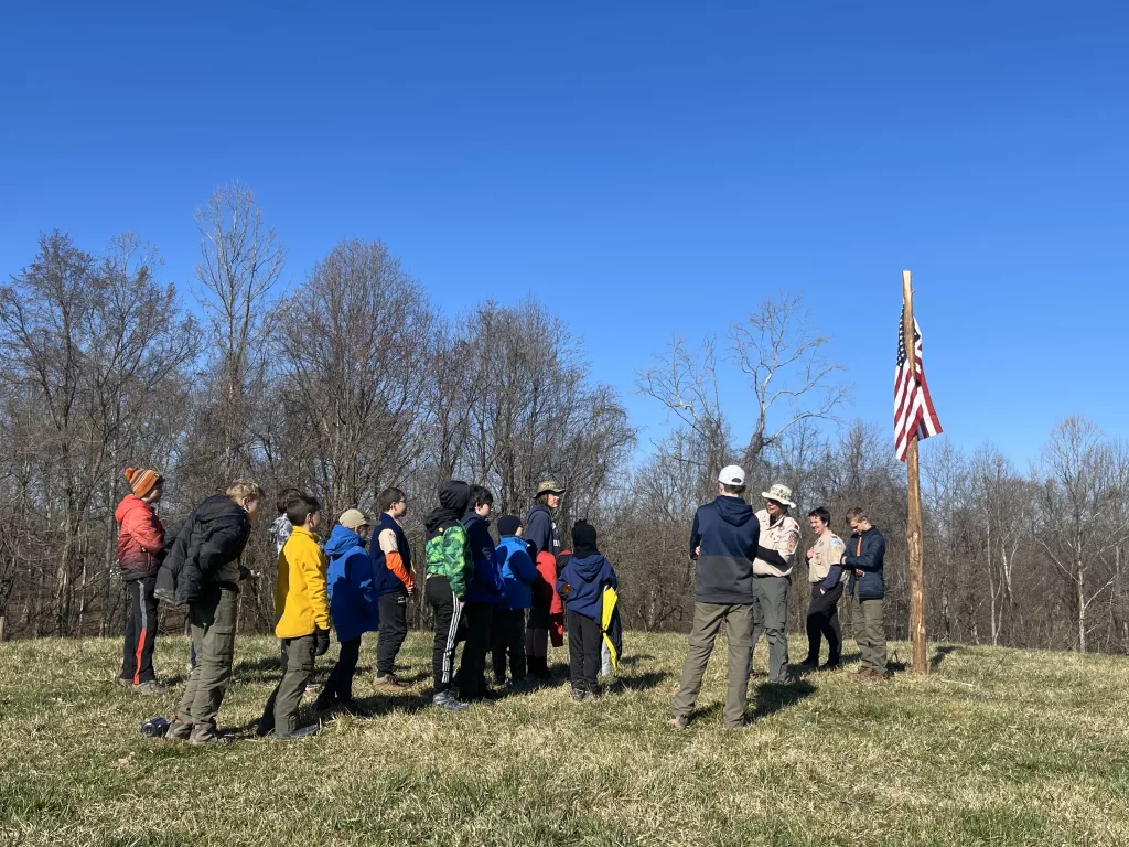 Written by Kay Q. On Friday the third of March, a potentially impossible mission had just begun. The scouts began to arrive at the Lucketts Community Center to travel to the campsite Upon arrival at the campsite, it was raining, but the older and middle scouts knew just how to handle the situation. Once we all found suitable locations, the adult leaders and senior scouts demonstrated how to put up a tent for the younger scouts. They took out a rainfly –a type of tarp used for keeping food and gear like camping stoves dry– and set to work. The following day started with cooking breakfast & cleanup. Those who didn’t cook cleaned. After cleaning and grabbing more water, everyone was made to count their steps over a distance of 100 feet. Then the younger scouts learned about cardinal directions and how to use a compass. This is when we began to prepare for the mission. The teams were separately told to go on an orienteering course so that they could practice using compasses. This was good practice for everyone, as it would come in handy later that day. After lunch, we learned about how to find North using the stars, how to respect the American Flag, how to deal with injuries, and how to tie certain knots. Afterwards, the older scouts took a tour of the mission course. While this was happening, the other scouts had time to bond and get to know each other better. Once the older scouts got back, we ate dinner. Finally, it was time for Mission Impossible. The premise of Mission Impossible is simple; use your compasses to find points where there are clues that lead you to the next point. The catch; if you used any lights or made loud noises you could attract zombies! The scouts went from point to point and uncovered many clues, while having a lot of fun. After the mission was won and done, many of us scouts sat around a campfire for an hour before heading to sleep. The following morning we got up and ate breakfast. Then the teams got together to finish the orienteering course, lunch and cleaning up the campsite. Back to the Community Center for “Roses and Thorns” where we all have the opportunity to share what we could have personally done to perform better and be more prepared. Every scout had a good time and many younger scouts learned the important skill of how to use a compass The main lessons of Mission Impossible are that being prepared and critical thinking make even the most seemingly impossible missions possible. Flag Ceremony Making a Stretcher in the Dark Planning in the Dark Knocking off Requirements Wrapping Up